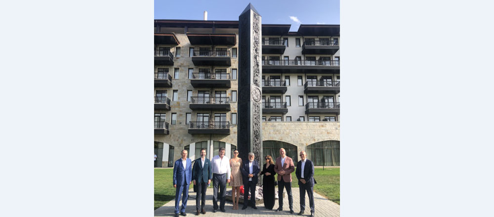 Паметникът бе открит днес веднага след освещаването на хотела в присъствието на председателя на Народното събрание Росен Желязков, на домакина Валентин Златев, на много гости, сред които представители на туристическия бранш от България и чужбина, кметове, творци.