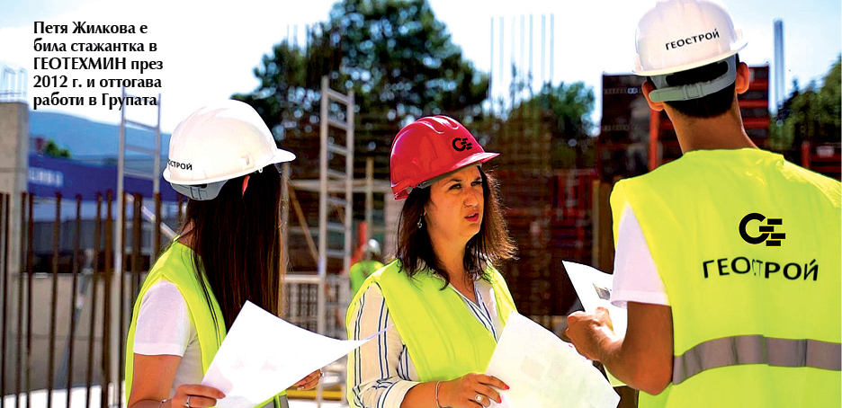 Петя Жилкова е другият специалист от екипа на Геострой, който започва чрез стажантска програма. През 2012 г. Петя е стажант в Геотехмин ООД. Там работи по чуждестранни проекти. През 2015 г. става част от екипа на Геострой. В компанията работи по големите инфраструктурни проекти в областта на пътното строителство. "Най-ценното за мен винаги е било да доказвам личностните си качества, което в Геострой е високо ценено през годините. Мотивира ме възможността