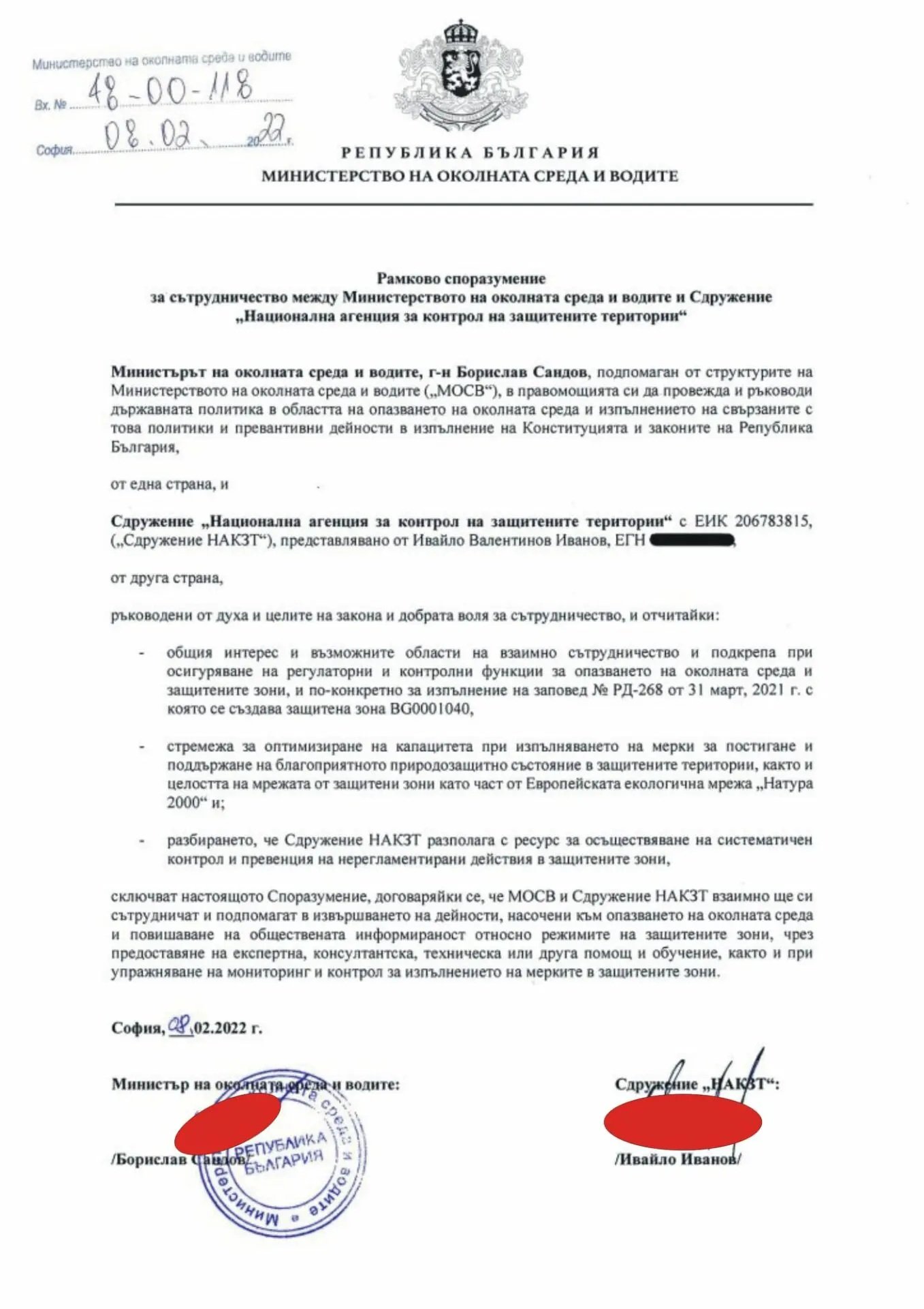 Документът е подписан на 8 февруари 2022 г. от Ивайло Иванов и министъра в кабинета на Кирил Петков Борислав Сандов.