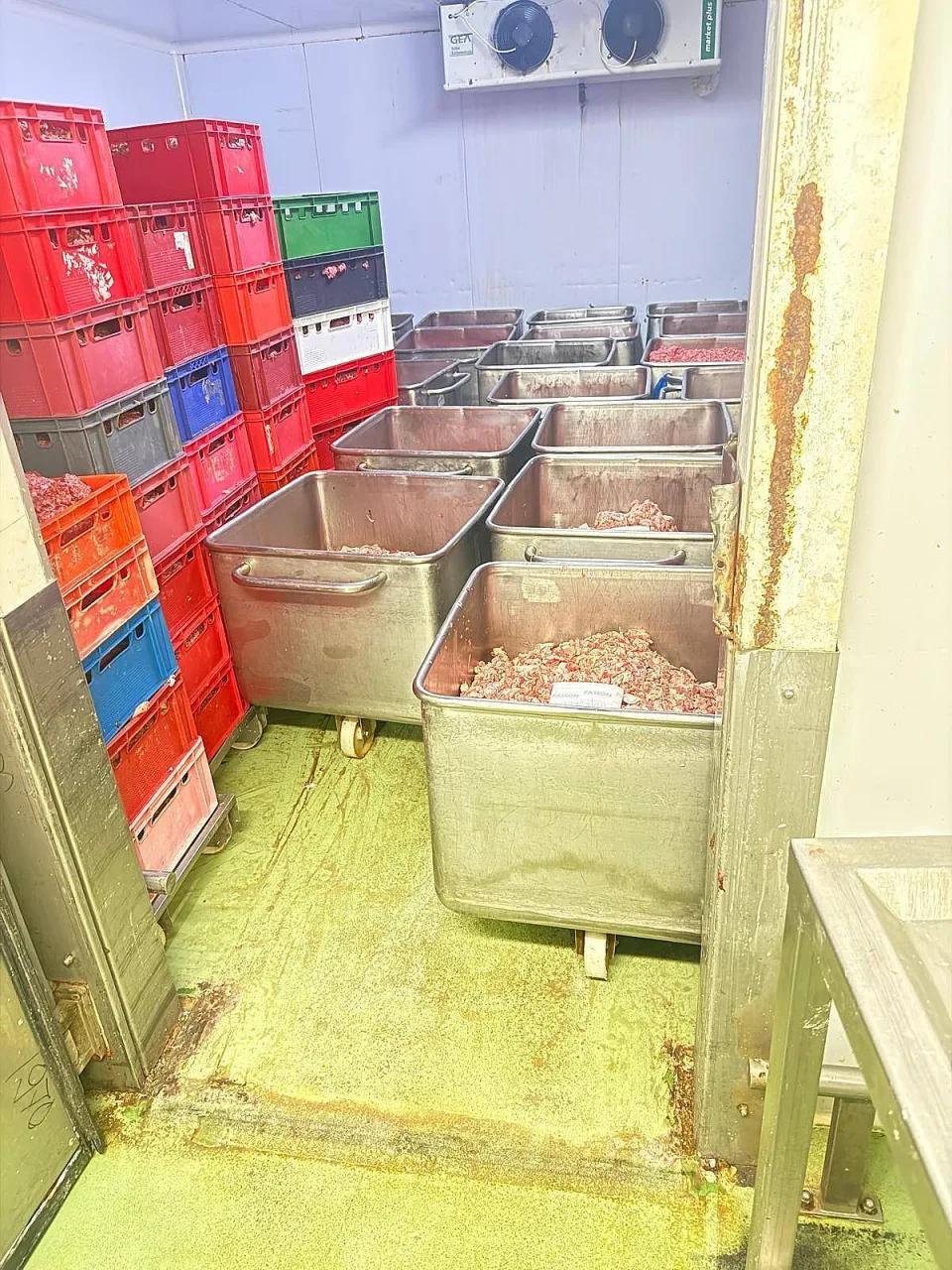 В друг склад са установени над 3 тона осолена сланина, за които не може да се докаже спазване на технологичния процес на обработка, както и 1 тон осолено месо, съхранявано в дървени съдове, които не позволяват ефективно почистване и дезинфекция.