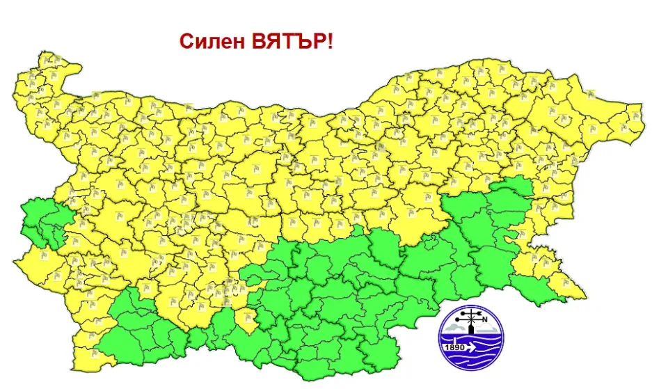 Опасните ветрове продължават да фучат в половин България. От Националния институт по метеорология и хидрология е издадено предупреждение за силен вятър в областите Бургас, Варна, Добрич, Шумен, Силистра, Стара Загора, Разград, Русе, Велико Търново, Габрово, Ловеч, Пловдив, Видин, Враца, София-област, София-град, Пазарджик, Благоевград, за днес, 29 декември.