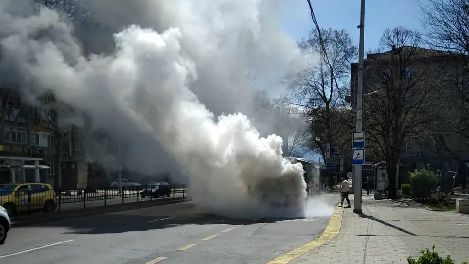 Автобус на градския транспорт се запали в движение в Пловдив по обед. Благодарение на бързата реакция на шофьора пострадали, за щастие, няма. Превозното средство се е движило по линия №4 в града, когато е пламнало, съобщи БНТ.