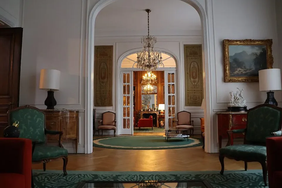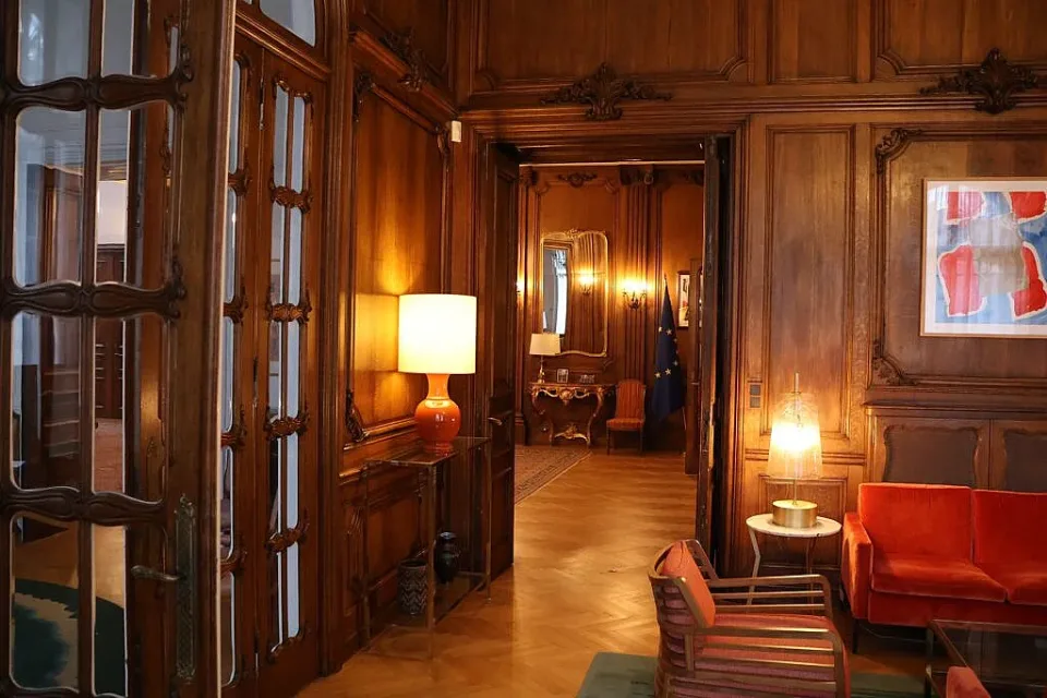 Посетителите можеха да видят богатия интериор на този аристократичен дом в необароков стил, построен през 1929 г. по поръчка на един от най-заможните хора в България по това време, известния Ангел Куюмджийски – банкер, следвал в Сорбоната, който е живял в него със семейството си до 1936 г. Това е годината, в която Франция придобива сградата, за да я превърне в своята дипломатическа легация.