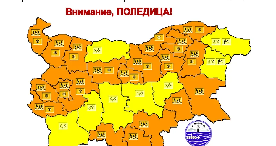 В часовете след полунощ валежите от дъжд в региона постепенно ще преминават в леден дъжд и мокър сняг, особено в Предбалкана, по високите полета и в планинските проходи. При тези условия настилките ще заледяват бързо, което създава риск от пътнотранспортни произшествия и затруднения в движението. Поледицата, известна още като „черен лед“ е най-опасното и коварно зимно явление.