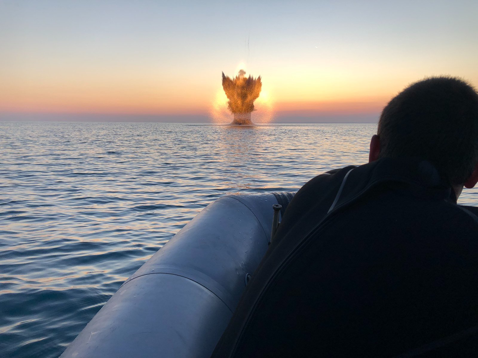 В 20.50 ч. мината е унищожена с контролиран взрив от групата водолази-взривчици.
