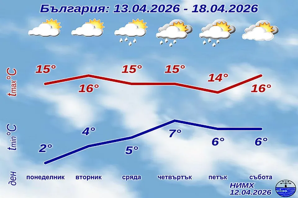 Минималните температури ще се повишат леко, докато дневните ще се понижат съвсем слабо, запазвайки усещането за типично пролетно, но нестабилно време.