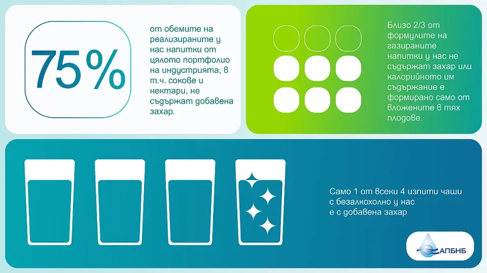 Само 1 от 4 изпити чаши с безалкохолно у нас е с добавена захар, чието количество устойчиво намалява. Това показват данните от годишното независимо експертно проучване за калоричността на реализираните на българския пазар безалкохолни напитки. 75% от обемите на реализираните у нас напитки от цялото портфолио на индустрията, в т.ч. сокове и нектари, не съдържат добавена захар.