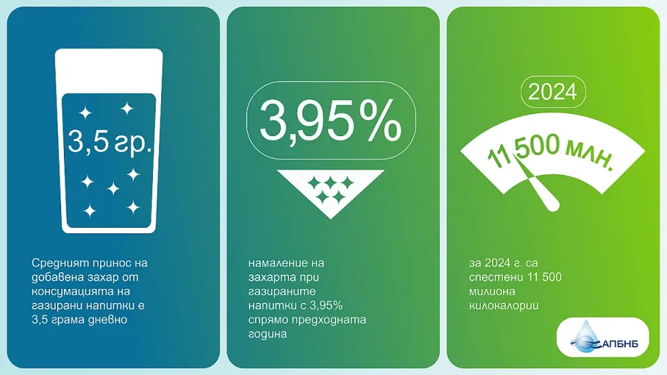 На база данните от НСИ за средното годишно потребление на член от домакинство през 2024 година, средният принос на добавена захар от консумацията на газирани напитки е 3,5 грама дневно. Това количество представлява едва около 7% от препоръчителния дневен прием на захари за възрастни, определен от СЗО. В резултат на вложените от индустрията усилия, при нивата на консумация за 2024 г. са спестени 11 500 милиона килокалории.