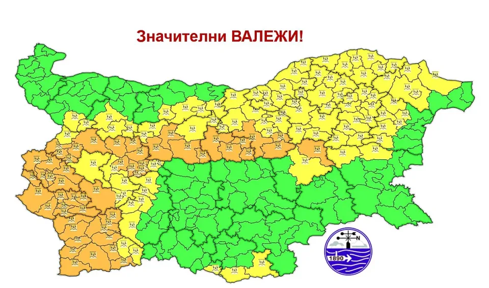 Времето над страната днес ще се задържи облачно с валежи от дъжд, значителни на места в Югозападна, Централна Северна и Североизточна България, както и в южните райони на Източните Родопи. На по-малко места и по-слаби ще са валежите в югоизточните и северозападните райони. Вятърът ще отслабне и ще се ориентира от север-североизток. В Южна България ще остане от юг-югозапад, ще е умерен, в югоизточните райони временно силен.