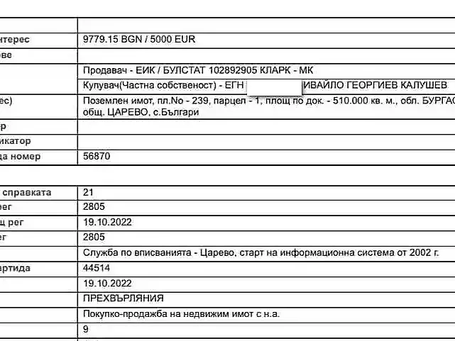 Ето какво фигурира официално в имотния регистър като собственост на Ивайло Калушев на територията на община Царево. Остава загадка чии са останалите декари.