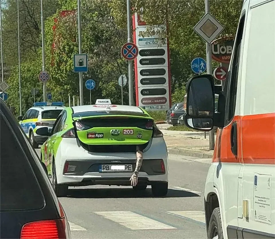 Пловдивско такси събра погледите на минувачите и стана повод за ожесточен спор във Фейсбук. Потребители заснеха необичайната кола, от чийто багажник се подава човешка ръка.