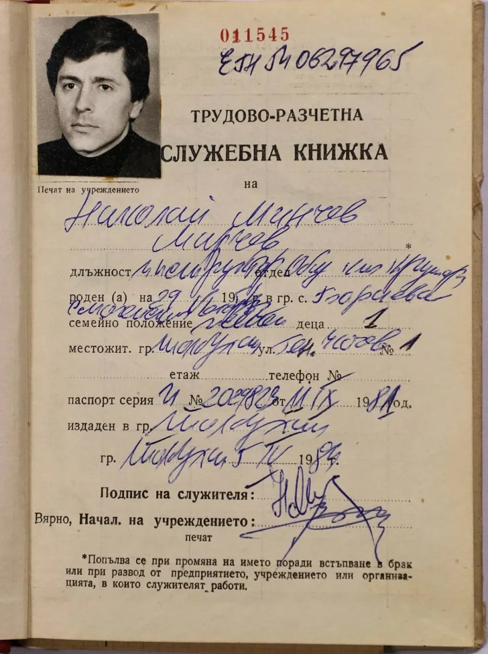 От заведената в ЦК на БКП т.н. "трудово-разчетна служебна книжка" с № 011545 на Николай Минчев Мирчев разбираме, че е роден на 26 юни 1954 г. в село Бериева, в тогавашния Смолянски окръг. Отбива военната си служба в периода 1972-1974 гг. Завършил е "българска филология" във ВТУ "Кирил и Методий". Съпругата му Маргарита (вече покойник) е родена на 03.09.1952 г. Имат две деца - син Ивайло, роден на 06.05.1980 г. и дъщеря Татяна, родена на 02.06.1984 г.