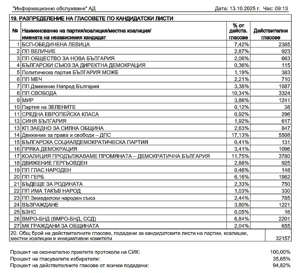 Шести са ПП ГЕРБ с 1982 гласа или 6.16%.