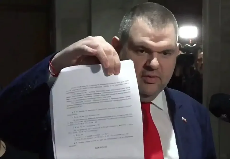 Първо, аз обичам с факти да говоря. Ивайло Мирчев, Борисов, Пеевски, каза лидерът на ДПС и на ПГ на ДПС-Ново начало Делян Пеевски, показвайки пред журналисти в НС малка част от законопроектите, подписвани по време на сглобката. Това ви го давам, да си го снимате, каза Пеевски, оставяйки документите на репортерите.