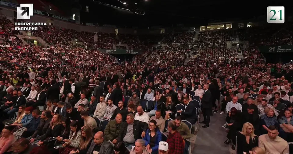 Впечатляващ финал на кампанията за парламентарните избори прави Румен Радев. Закриването на кампанията е в Арена 8888, която е пълна.