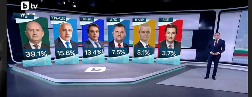 С нови данни излезе Маркет линкс в 21 часа. Те напълно обърнаха ситуацията. Социологическата агенция обяви, че БСП остава под чертата. Алфа Рисърч даваше 4,1 на сто за социалистите, толкова показваше и първото проучване на "Маркет линкс".