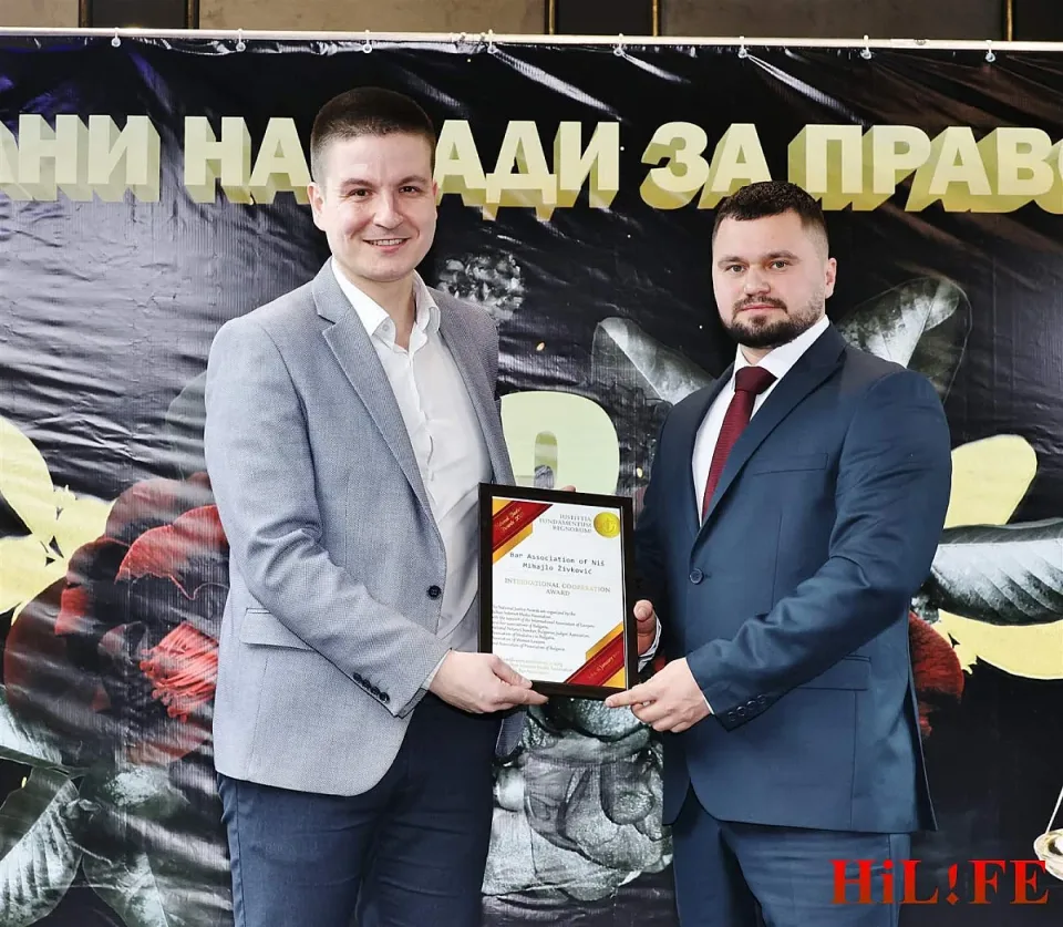 По време на вечерта бе отличено и международното сътрудничество с Адвокатска колегия Ниш по повод 50-годишнината от нейното създаване. Призът получи адвокат Михаило Живкович от Пирот, който пристигна специално за церемонията, а статуетката му бе поднесена от общинския съветник Радослав Червенков.