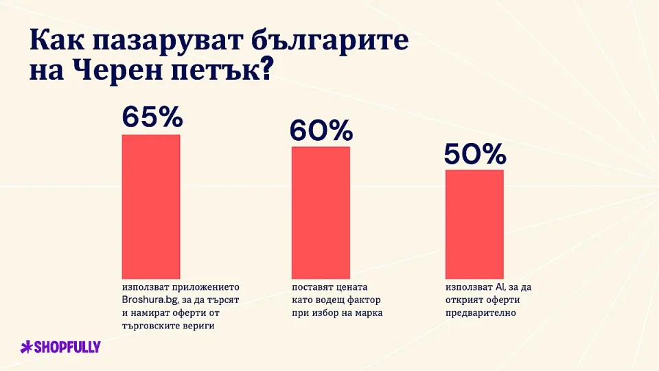 Технологиите играят ключова роля в този процес. Според данни на Shopfully 50% от българските потребители използват AI инструменти, за да открият най-добрите оферти - още преди голямата разпродажба да започне официално.