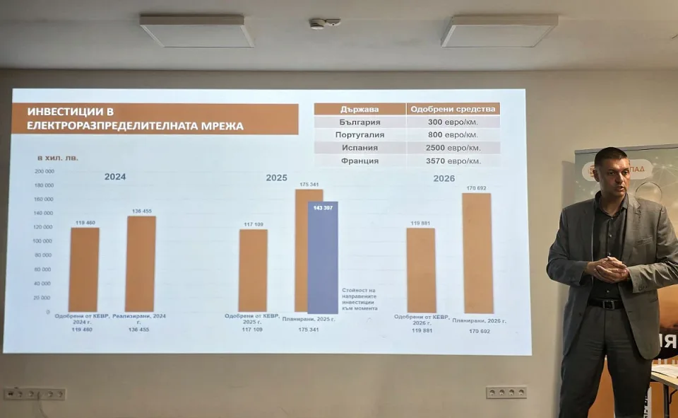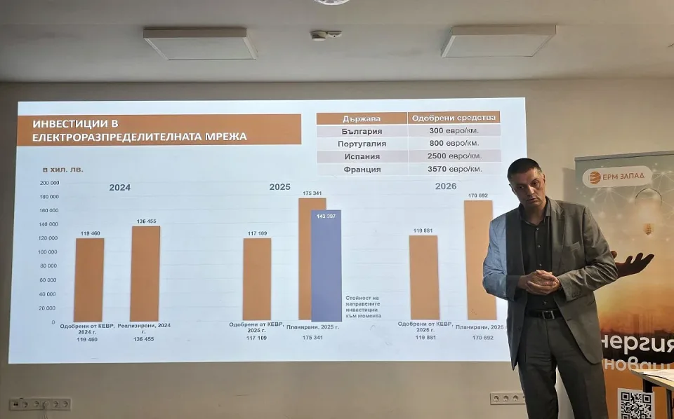Комисията за енергийно и водно регулиране (КЕВР) е одобрила 117 млн. лв. инвестиции за 2025 г., но ЕРМ Запад планира 175 млн. лв., т.е. много повече, за да отговори на бума от присъединяване на ВЕИ и нови сгради. „Когато съберете всички цифри, остават само 7 млн. лв. за други дейности“, казва Цветков и подчертава, че тази сума е несъизмерима с реалните нужди на мрежата.