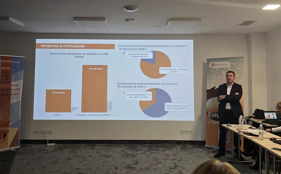 Смарт електромерите се оказват най-мощното оръжие срещу нерегламентираното присъединяване, което продължава да източва приходи и да пречи на редовните абонати. За първите десет месеца на 2025 г. ЕРМ Запад е установила 988 кражби – 797 битови и 191 от бизнес клиенти. „Имаме 70 души персонал в това звено. Скъпо начинание е – техника, автомобили, гориво, но няма как. Това е единственият начин да се опазва мрежата“, казва Виктор Станчев, като описва работата на 25 екипа на терен и 20 инженери за анализ на данните, които всеки ден откриват нови схеми за незаконно включване.