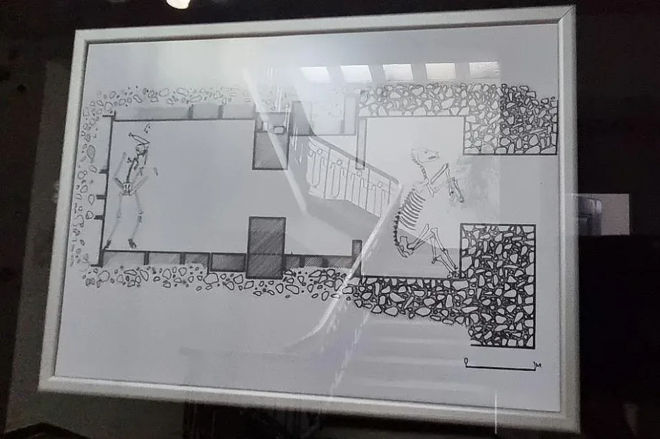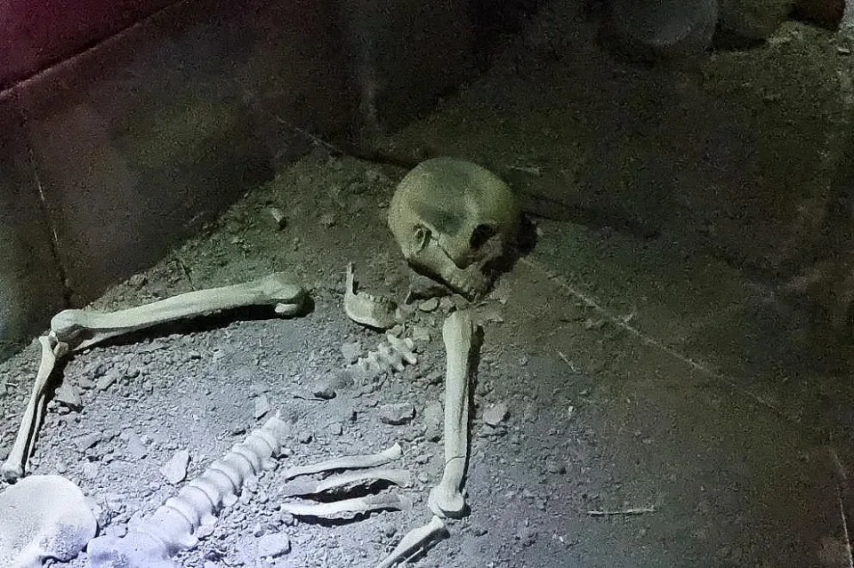 При разкопаването и са открити човешки скелет с погребални дарове, положени върху и около него.