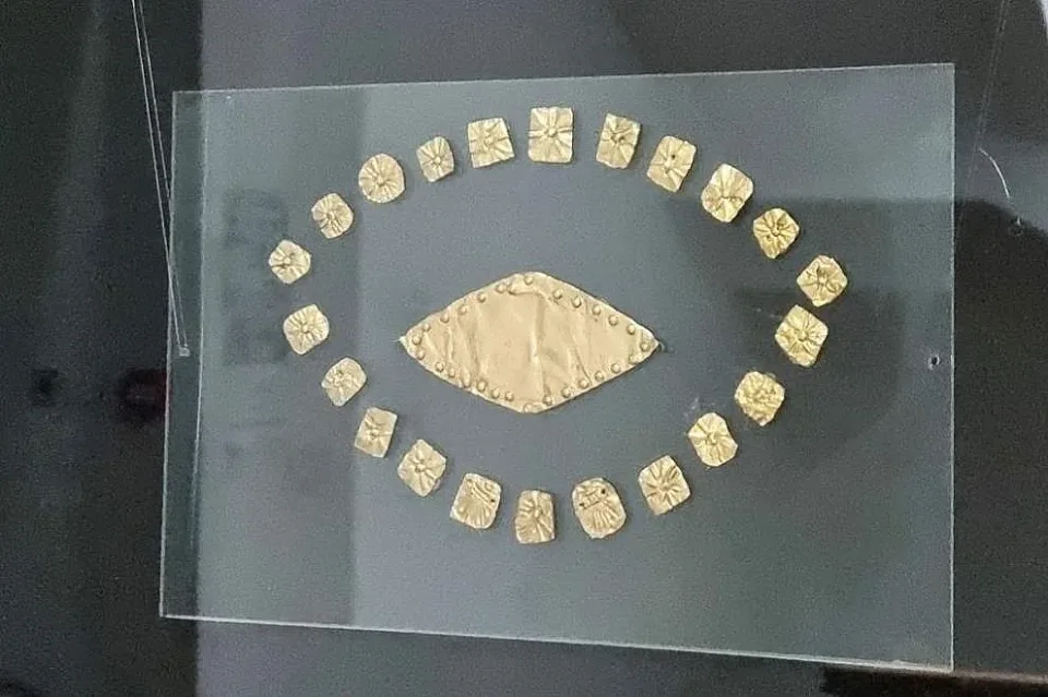 Сред предметите, извадени от могилата, са златен нагръдник, златни пластини за украса на дрехите, копия, бронзов меч, бронзова лампа, желязна юзда, гръцка червенофигурна керамика и други.