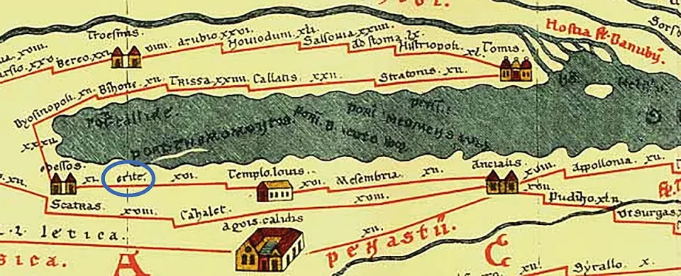 За първи път името на укреплението (oppidum) до устието на р. Камчия под формата Ерета (Ereta) се споменава в „Естествена История“ на Плиний Стари, завършена около 77 г. сл. Хр. Следващото по време сведение за крепостта е в сегмент VII на Пойтингеровата карта, чийто оригинал се датира в III или IV в. сл. Хр. Най-късното споменаване на топонима е в т. нар. Анонимна Равенска космография, създадена през VII в. сл. Хр. въз основа на по-ранни източници. В нея Ерета/Ерите (Erite) се споменава два пъти при описания на западнопонтийските градове, най-вероятно взети от карти, подобни на Пойтингеровата, или от пътеводители.