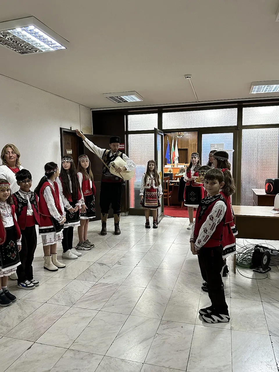 Учениците от ОУ „Иван Вазов“, СУ „Христо Ботев“, ОУ „Любен Каравелов“ и ОУ „Отец Паисий“ посрещнаха гостите по стара българска традиция – с мед и пита, с песни и усмивки. Прозвучаха „Катерино моме“ и „Моя страна, моя България“, изпълнени с много емоция и патриотизъм.