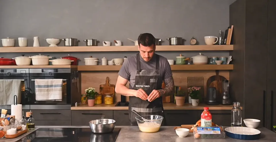 Шеф Никола Симеонов предлага рецепта, която е едновременно проста и впечатляваща: крем карамел с козунак, приготвен с безлактозно прясно мляко „Димитър Маджаров“. Резултатът е мек, кремообразен десерт с нежен аромат на ванилия и едва доловима сладост от козунака — нещо средно между класическия крем карамел и изкусителен домашен сладкиш.