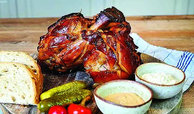 Поставят се в тава и се заливат с вода или бира. Отгоре се поливат с олио или разтопено масло. Пекат се в предварително загрята фурна на 180 °C около 2–2,5 часа, като периодично се поливат със соса от тавата. За хрупкава коричка температурата може да се увеличи до 200 °C за последните 15–20 минути.