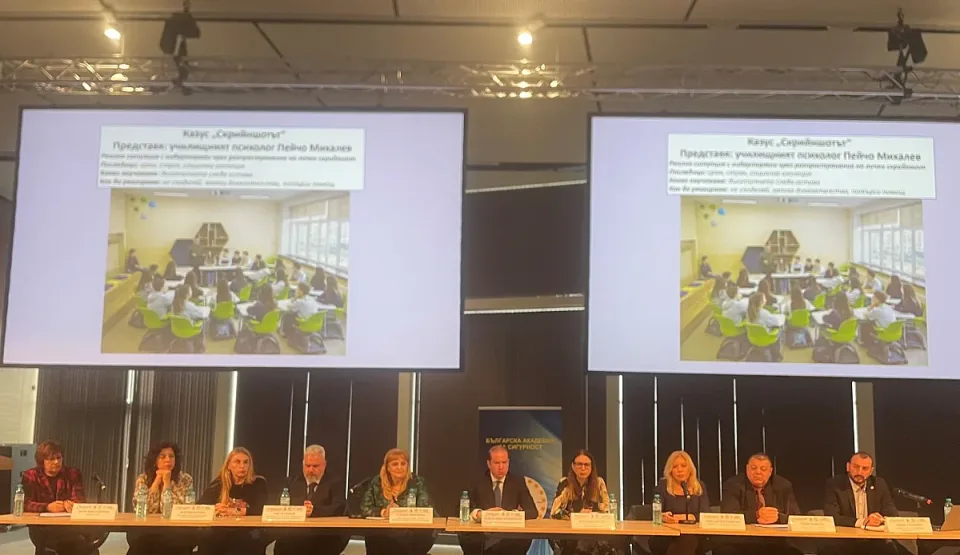Над 450 директори на училища и преподаватели от областта се събраха в голямата зала на международния конгресен център в Бургас, за да дискутират създаването на национален план за защита на децата от тормоз в интернет. В конференцията участваха народни представители, представители на съда, прокуратурата, МВР, ГДБОП. Специален гост на форума бе сливенският митрополит Арсений, в дискусията се включи и посланикът на Украйна у нас Н. Пр. Олеся Илашчук.