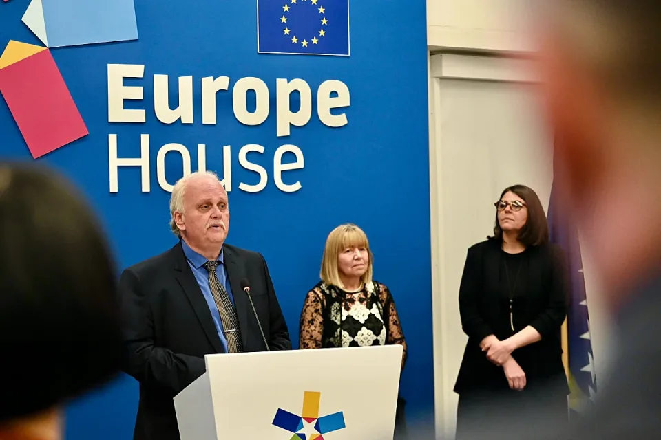 Изложбата „Динамика на радостта“, в която има 21 картини, бе открита в Europe House Sarajevо, реализирана в сътрудничество с Посолството на България в Босна и Херцеговина. Посланик Валери Йотов заяви, че както и досега, българското посолство съчетава тържеството за Националния празник на България с културно събитие. Изкуството е силен инструмент на дипломацията за утвърждаване на култура на мир, взаимно опознаване, толерантност и приятелство, смята той. Изложбата на Бистра Златарева ще остане в Дома на Европа в Сараево до 31 март т.г.