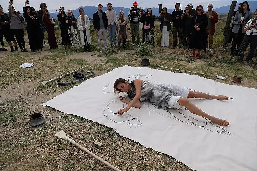 Ритуален пърформанс на Анна Александрова при откриването под съпровода на гъдулката на Христина Белева