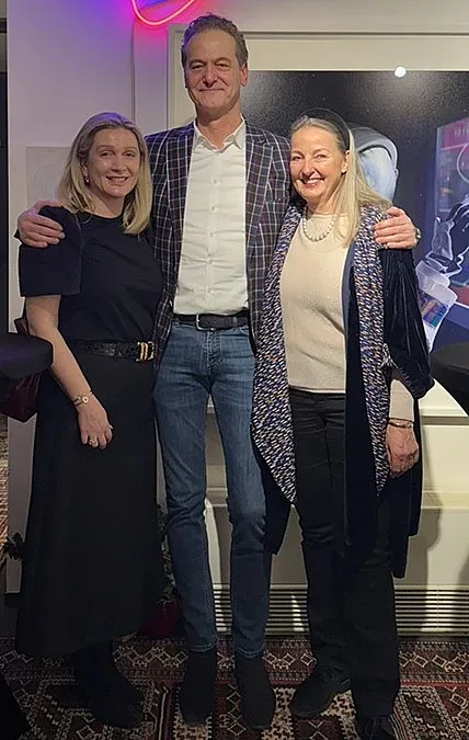 Бизнесменът меценат Николай Неделчев с две забележителни дами – художничката Габриела фон Хабсбург /в дясно/ и колекционерката Милена Деберг