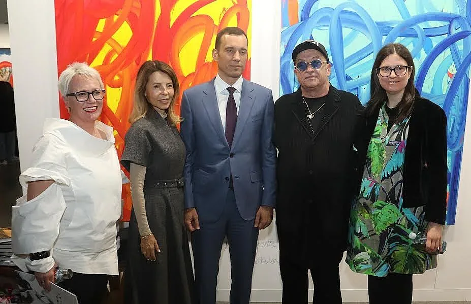 Френският арт консултант Стефани Д’Орлан, Ирена Гергова, Габриела фон Хабсбург и Латифа ал Рашид със Стефан Стоянов и Борис Сакскобургготски сред картините и скулптурите на Art agency