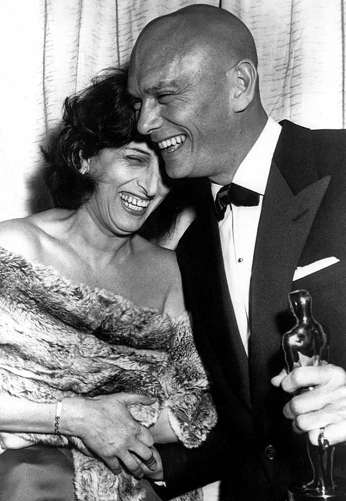 Маняни връчва "Оскар" на Юл Бринър за най-добър актьор за ролята му в "Кралят и аз" (1956)
