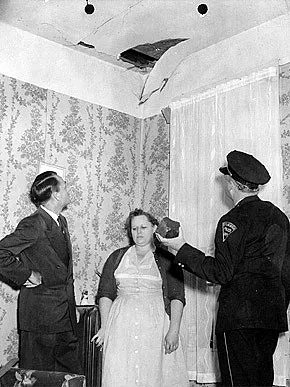 Едно от неговите парчета, с размерите на грейпфрут, пробива покрива на къщата на Ходжис, отскача от радиоапарат и удря спящата жена в бедрото, причинявайки масивен оток и синина. Ан се събужда в шок, а за секунди всички съседи се събират пред дома ѝ.