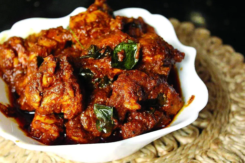 Продукти (за 2–3 порции): 500 г пилешко филе, нарязано на кубчета, 2 с.л. гхии, 1 ч.л. куркума, 1 ч.л. кимион, 1/2 ч.л. червен пипер, 2 скилидки чесън, нарязани на ситно, сол и черен пипер на вкус, магданоз за поръсване