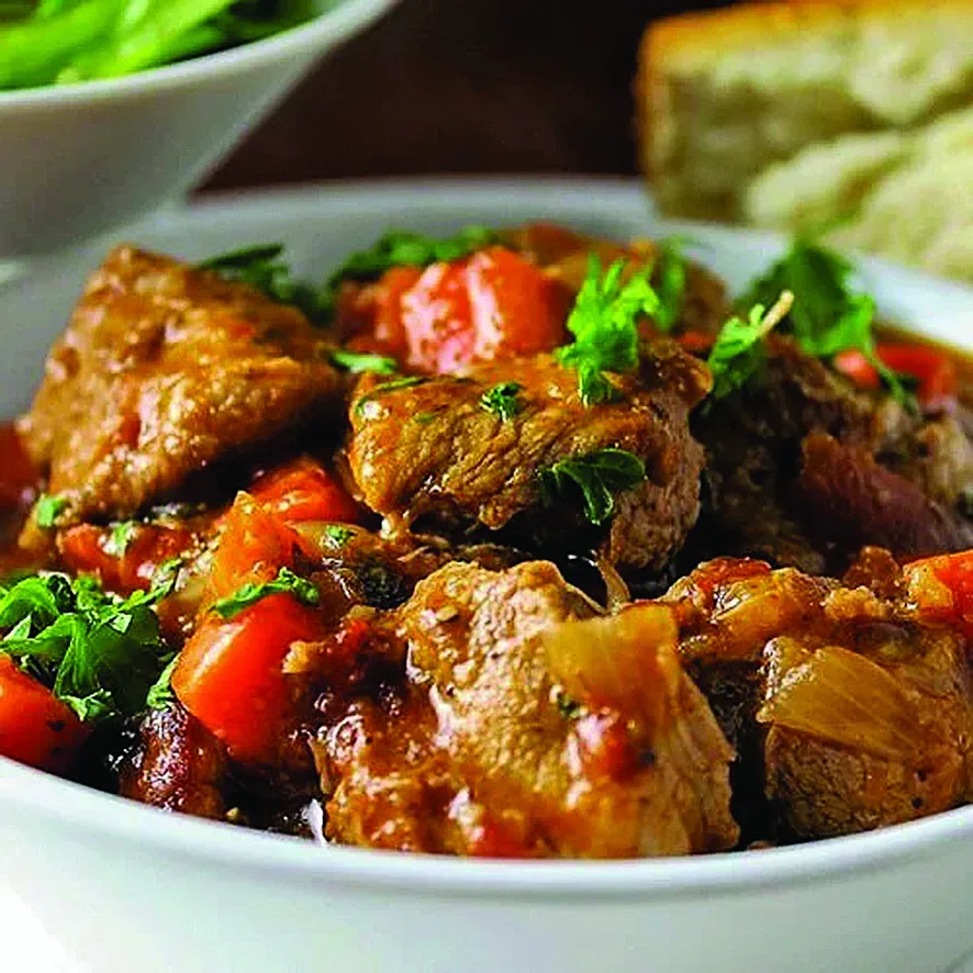 Приготвяне: Загрейте гхии в дълбок тиган или тенджера на среден огън. добавете чесъна, куркумата и кимиона за няколко секунди, докато ароматът се освободи. Сложете телешкото и го запържете 5–7 минути, докато се запечата отвън. Добавете лука, моркова и чушката и задушавайте още 10–12 минути, докато месото е сочно, а зеленчуците омекнат. Подправете със сол и черен пипер. Поръсете с пресен кориандър или магданоз преди сервиране.