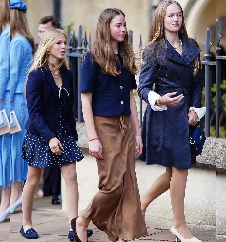 Тя бе заснета да напуска църквата с бъдещите си доведени сестри, вероятно отправяйки се към традиционния обяд, пишат таблоидите зад океана. Трите момичета бяха облечени в съчетани тоалети в сини тонове. Дебютът им бележи важна стъпка за смесеното семейство. Филипс обяви годежа си с Хариет след едногодишна връзка. Джорджина е дъщеря на Спърлинг от предишния ѝ брак с фитнес инструктора Антонио Сейнт Джон Спърлинг. Тя беше представена за първи път пред кралското семейство миналата година в Балморал.