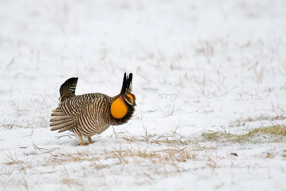 Тези красиви птици от семейство Фазанови са разпространени в Северна Америка. Мъжките избират места, върху които изпълняват сложни танцови движения и издават звуци, с които да привлекат партньорка. По време на танца перата на врата на мъжкия се издигат над главата му, а големите жълто-оранжеви торбички на врата и над очите му се издуват. Няколко мъжки се борят за правото да танцуват в центъра на избраното място. Спечелилият индивид се чифтосва с женските.