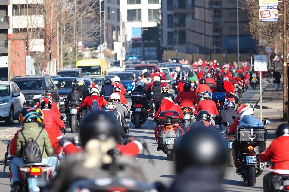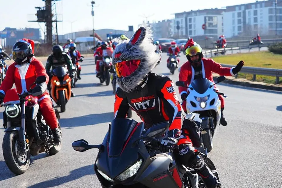 С празнично настроение по бул. „Цариградско шосе“ преминаха мотористи, облечени като Дядо Коледа, съобщава БТА.