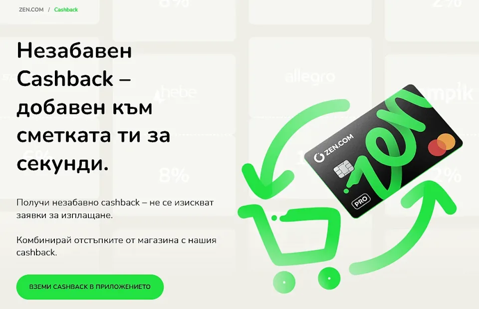 кешбекът се натрупва директно в ZEN сметката ви и можете да го използвате веднага