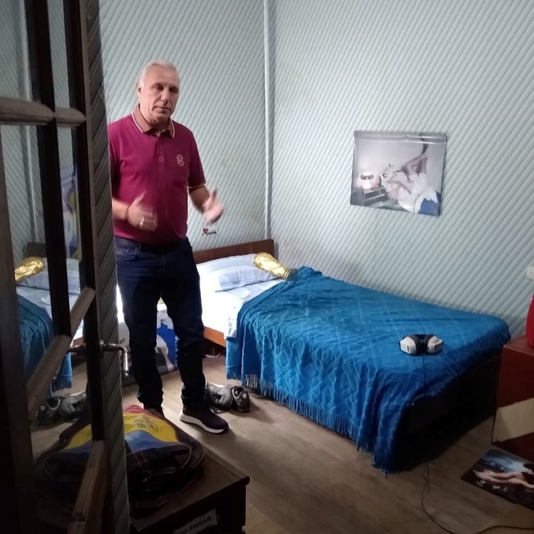 Камата влезе в стаята на легендата, показвайки на света плочите и простичкото обзавеждане, сред което е израснал великият играч и негов добър приятел.
