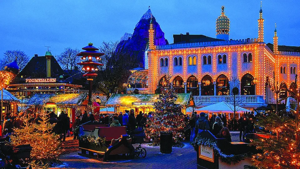 Коледният базар в Копенхаген не се провежда на централния площад, както е традиционно в други градове, а в стария увеселителен парк "Tivoli Gardens". Там блестят над 1000 коледни елхи, като най-голямата се поставя в близост до концертна зала Тиволи. Преди Коледа зоната на парка се превръща в приказен свят, където по улиците се разхождат елфи и елени, а в малки къщички, традиционно боядисани в червено, се сервират сладкиши и топли напитки. Гостите ще намерят много ресторанти и кафенета, предлагащи коледни пайове, печени ябълки и пуканки с канела. Специално за Коледа пивоварите произвеждат няколко вида бира, която също може да бъде опитана на базара.