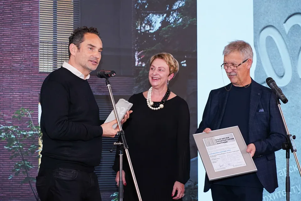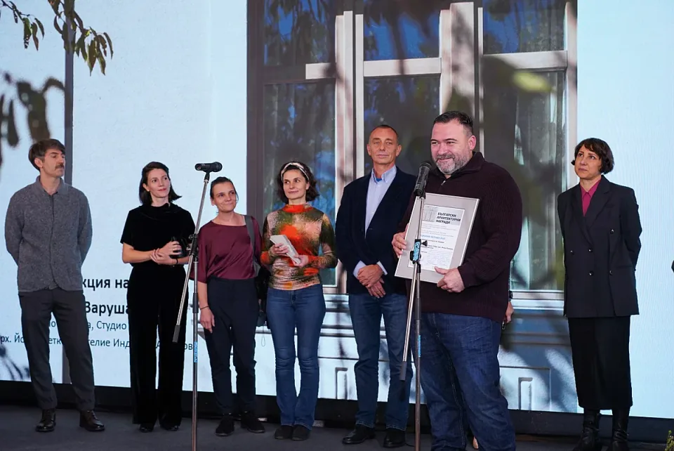 Зам.-министърът на културата Тодор Чобанов връчи голямата награда на POV архитекти. Проектът за реставрация възстановява идентичността, предназначението и приемствеността на емблематичната обществена сграда. Концепцията на екипа цели да осъвремени пространството, да възстанови компрометираните елементи от интериора и да създаде единен визуален и пространствен облик, който да преобрази характера на цялата зона. Възроденото пространство отново поставя сградата в центъра на градския живот.