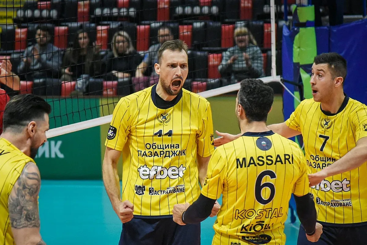 След 3:1 у дома преди седмица, тимът от Пазарджик се нуждаеше от 2 гейма в Пирея, за да не се стига до "златен", какъвто щеше да има при успех на гърците с 3:0 или 3:1. Вместо това - нова победа за българите с 3:1 (21:25, 25:23, 25:19, 25:23).