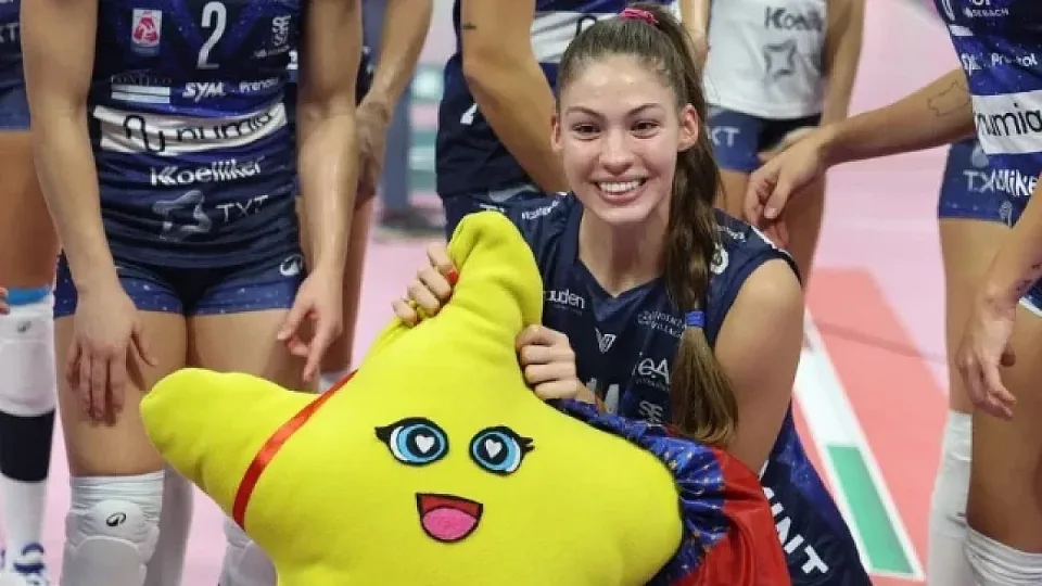 Хена Куртагич е на 21 години и играе като централен блокировач за Милано, а вече е и националка на Сърбия, с който има сребро от Европейското през 2023 г. Красавицата е висока - 197 сантиметра. Това едва ли тревожи българския юнак с неговите 207 сантима!