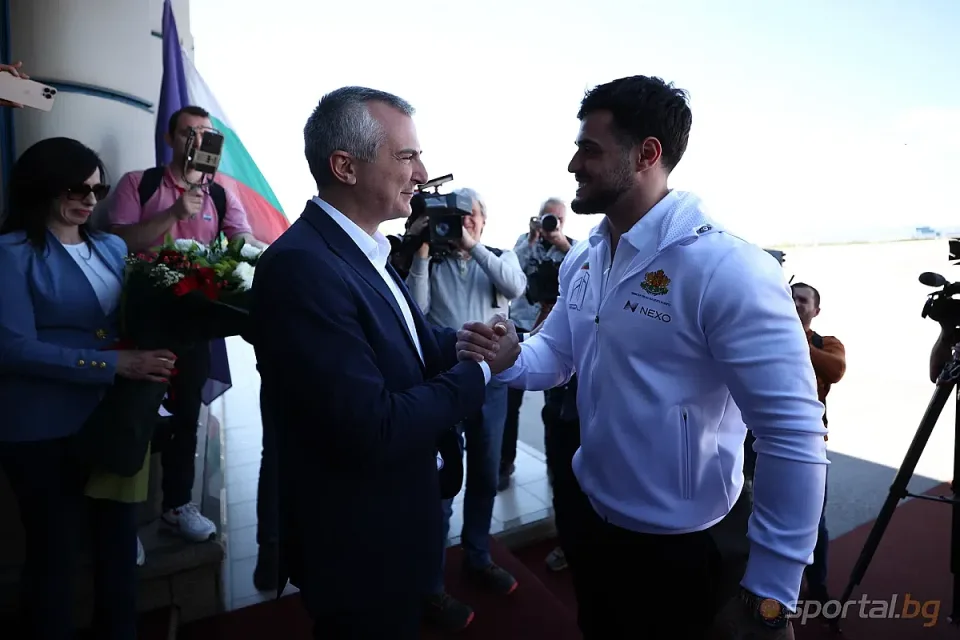 "За нас е гордост, че носим такава радост на България. Благодарим Ви за подкрепата", каза Насар на министър Илиев. Освен от официални лица, щангистите бяха посрещнати и от група деца с родителите си, като те се наредиха за снимки и автографи от шампиона Насар. Заедно с шампиона, у нас се прибра и бронзовият медалист в кат. до 110 кг Христо Христов.