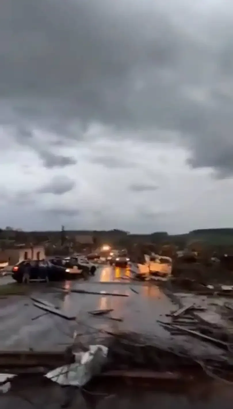 Мощното торнадо удари града в петък вечерта, 7 ноември, местно време, отприщвайки ветрове, които откъснаха покриви на къщи, изкорениха дървета и електрически стълбове и срутиха зидани сгради, оставяйки улиците осеяни с отломки.